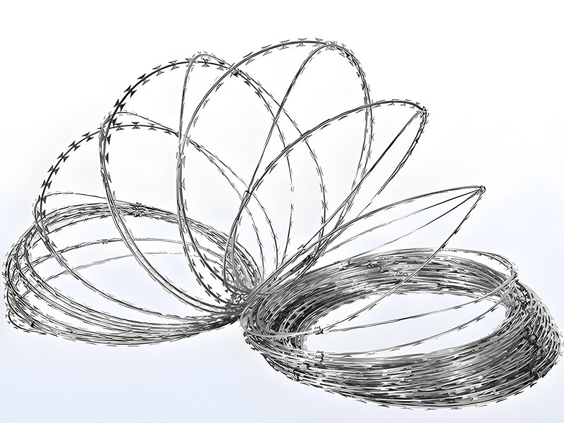 - Concertina Wire (Coils): This wire is made into round coils that can stretch out like a spring. You can get it in different sizes (450 mm, 610 mm, 730 mm, 900 mm, and 980 mm across). It’s made of strong galvanized or stainless steel with BTO-22 or CBT-60 blades, which are 34 mm to 65 mm apart. This kind is often used by the military, in prisons, and at borders to secure areas.